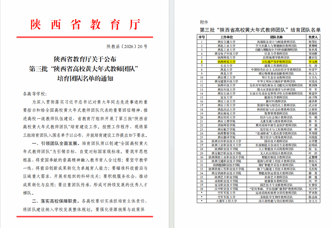 公司文化遗产保护教师团队入选第三批“陕西省高校黄大年式教师团队”