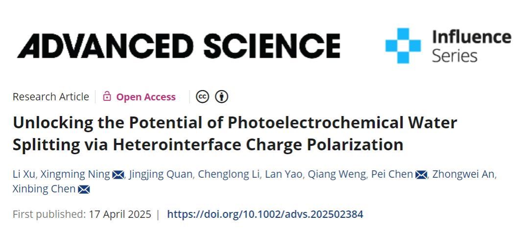 该研究表明异质界面电荷极化效应可优化半导体/电催化剂和电催化剂/电解液两个界面,实现了半导体/电催化剂耦合体系高的PEC性能,这为理性设计高效的PEC光电极提供了思路。相关研究成果以“Unlocking the Potential of Photoelectrochemical Water Splitting via Heterointerface Charge Polarization”为题,发表于知名学术期刊《Advanced Science》上。