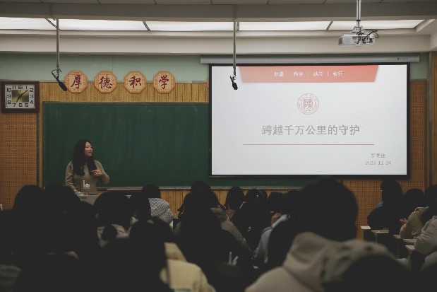 11月24日晚,太阳成tyc33455ccwww历史文化遗产保护教育部工程研究中心罗雨佳老师在雁塔校区,为来自16个公司的150名同学作题为“跨越千万公里的守护”专题讲座。罗老师从文物保护的基础概念讲起,深入浅出地带大家了解文物保护工作的意义和内容,并结合自己在英国的学习和实践经历,图文并茂地向同学们介绍了国内外文物保护技术的特点和差异。罗老师指出,科技创新已经成为文物事业高质量发展的核心动力,鼓励大家利用所学知识将科技的力量融入到文物修复与保护工作中,为把我国建设成文物保护利用强国做出贡献。