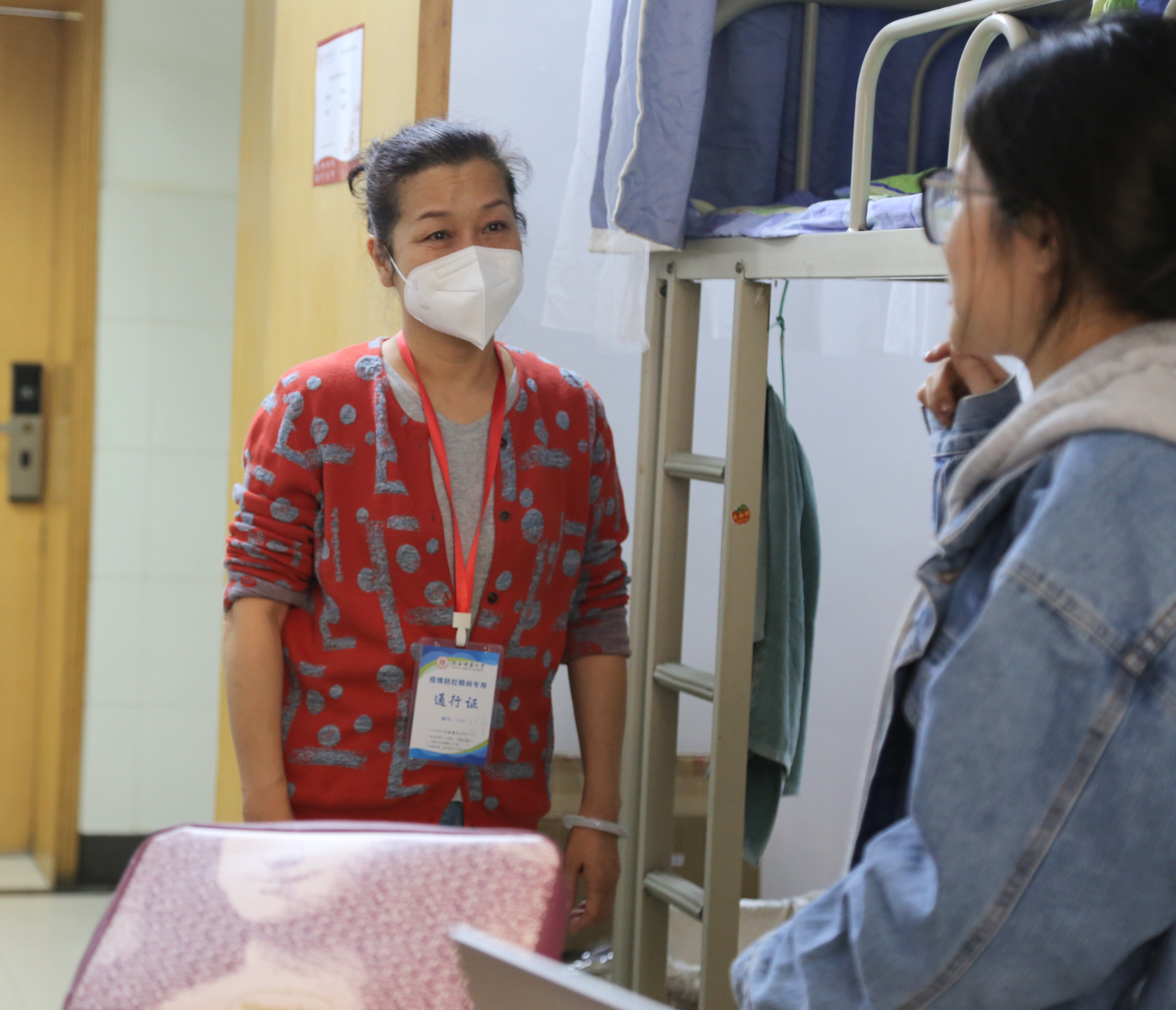 走访中,靳春泓与新生进行亲切交流,询问大家来校感受和生活情况,嘱咐他们注意宿舍卫生与安全,营造良好的住宿与学习环境。同时,希望同学们按照公司防疫工作通知要求,在校期间加强自我防护,做好疫情防疫工作,提高安全防范意识,遇到问题第一时间联系辅导员。她勉励新生尽快调整好状态,以积极进取的心态迎接新学期的学习和生活。