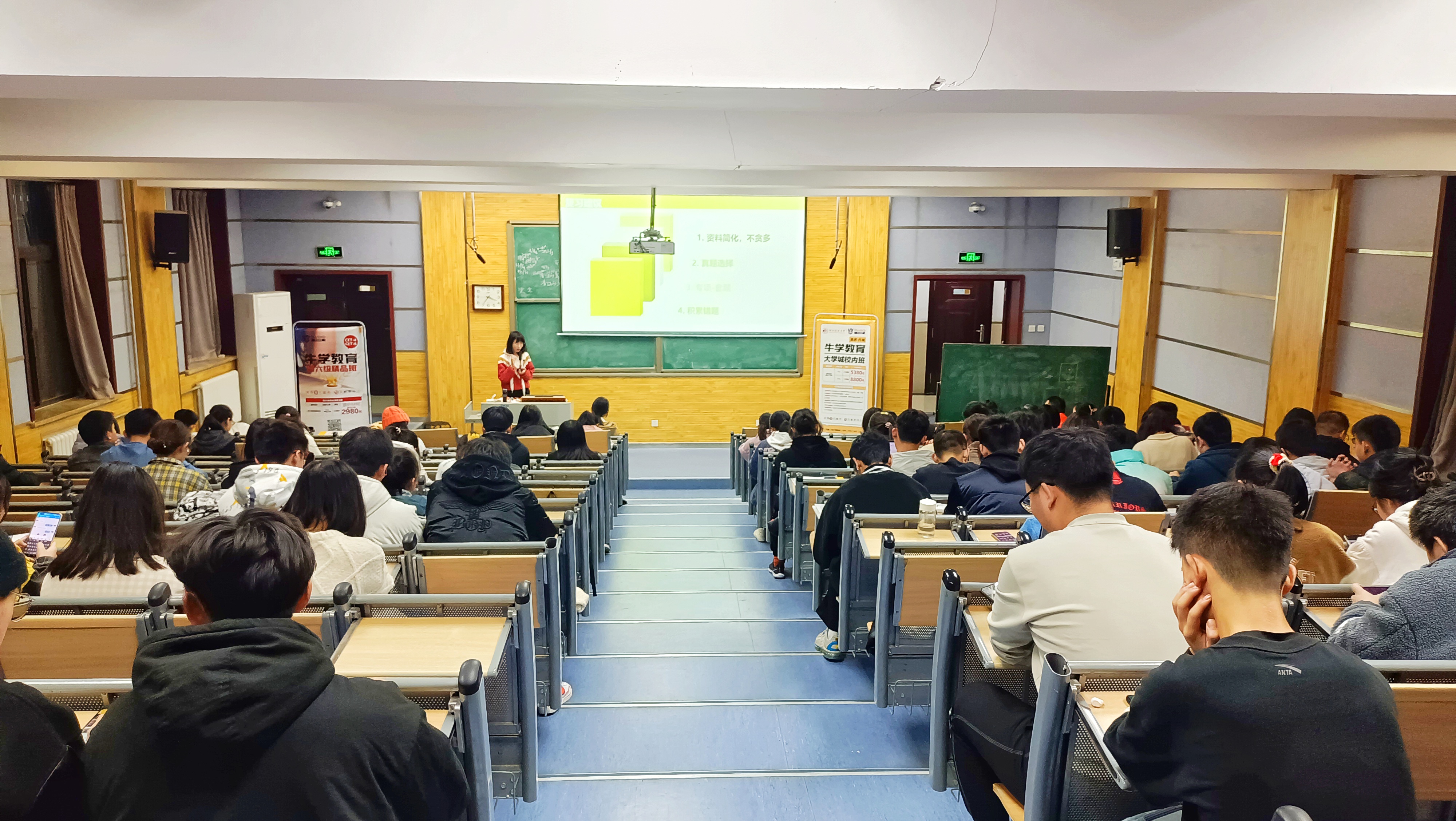 12月3日晚7时,公司邀请牛学教育的教师为2021、2020级全体本科生举办英语四六备考指导讲座。