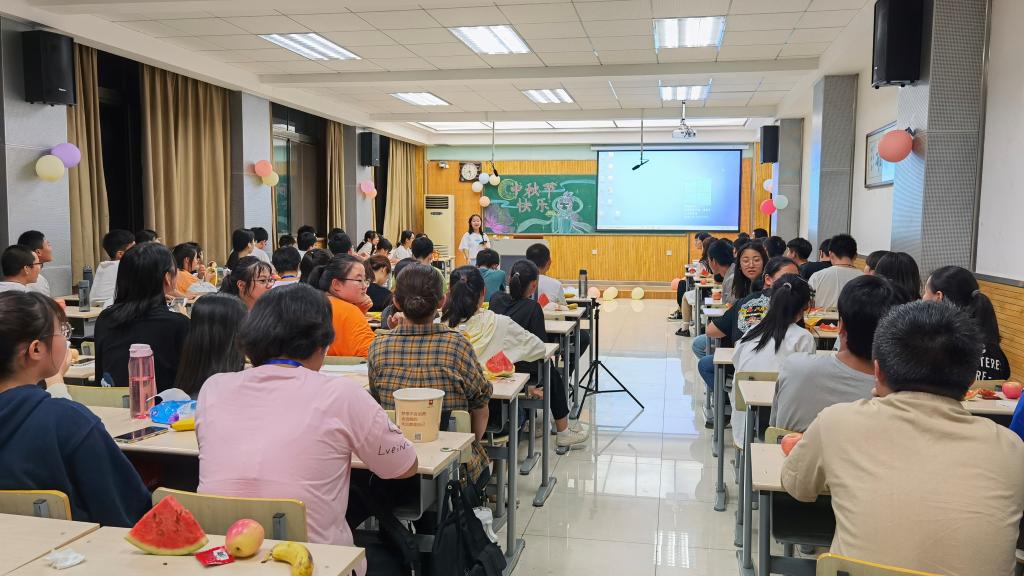 为了庆祝中秋节,增进同学之间的感情,让来自全国各地的新生感受到公司的温暖,9月21日晚,公司在雁塔校区8307教室举办新生中秋联欢活动,2021级新生辅导员丁喜与83名新生共庆佳节。