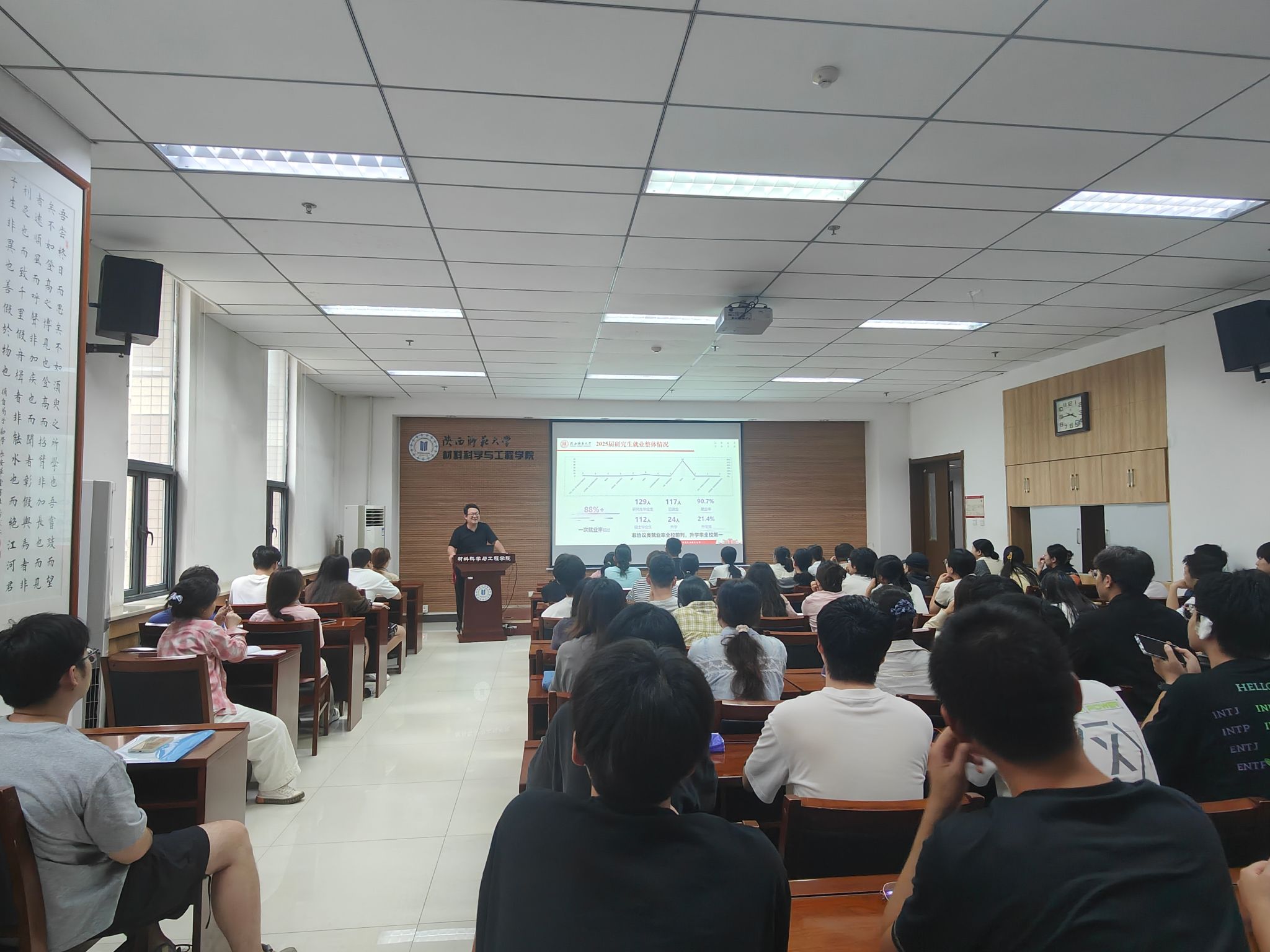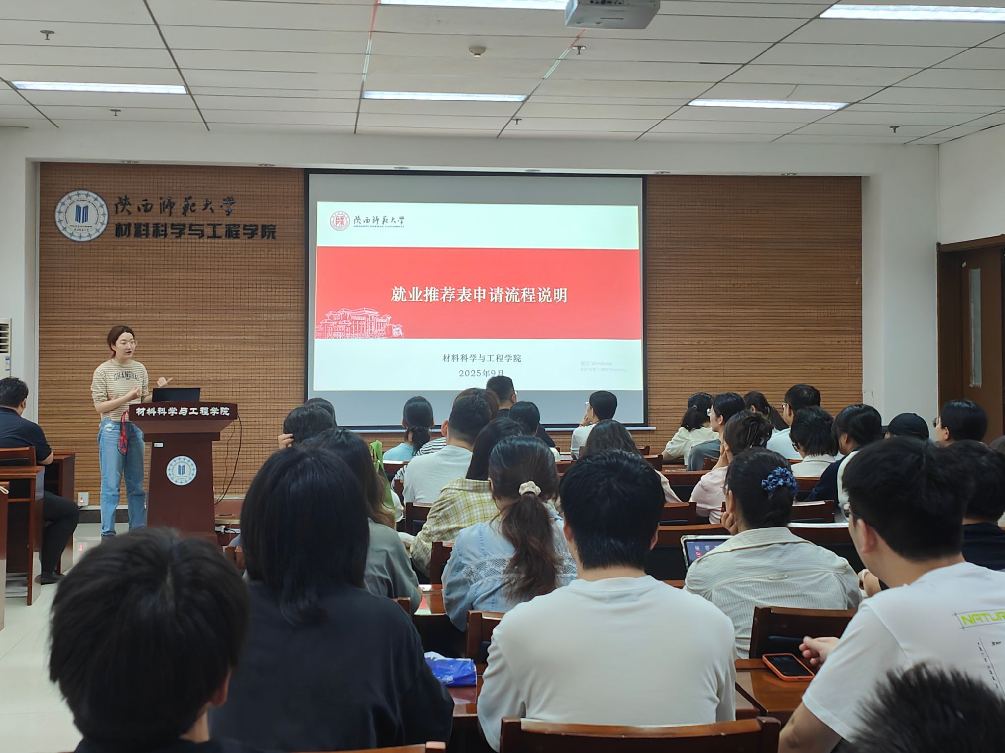 随后,公司党委副书记张汉杰结合上一年度就业数据与当前市场环境,深入分析了2026届毕业生面临的就业形势。张书记通过对比秋招与春招的岗位数量、企业类型和竞争压力等特点,强调秋招是毕业生获取优质offer的关键阶段,鼓励大家积极把握秋招机遇,主动投递简历、参与招聘活动。他还从实战角度出发,分享了如何高效获取就业信息、优化简历内容以及应对面试考验的技巧,建议同学们明确自身定位,增强信心,展现材料学子的专业素养与综合能力。