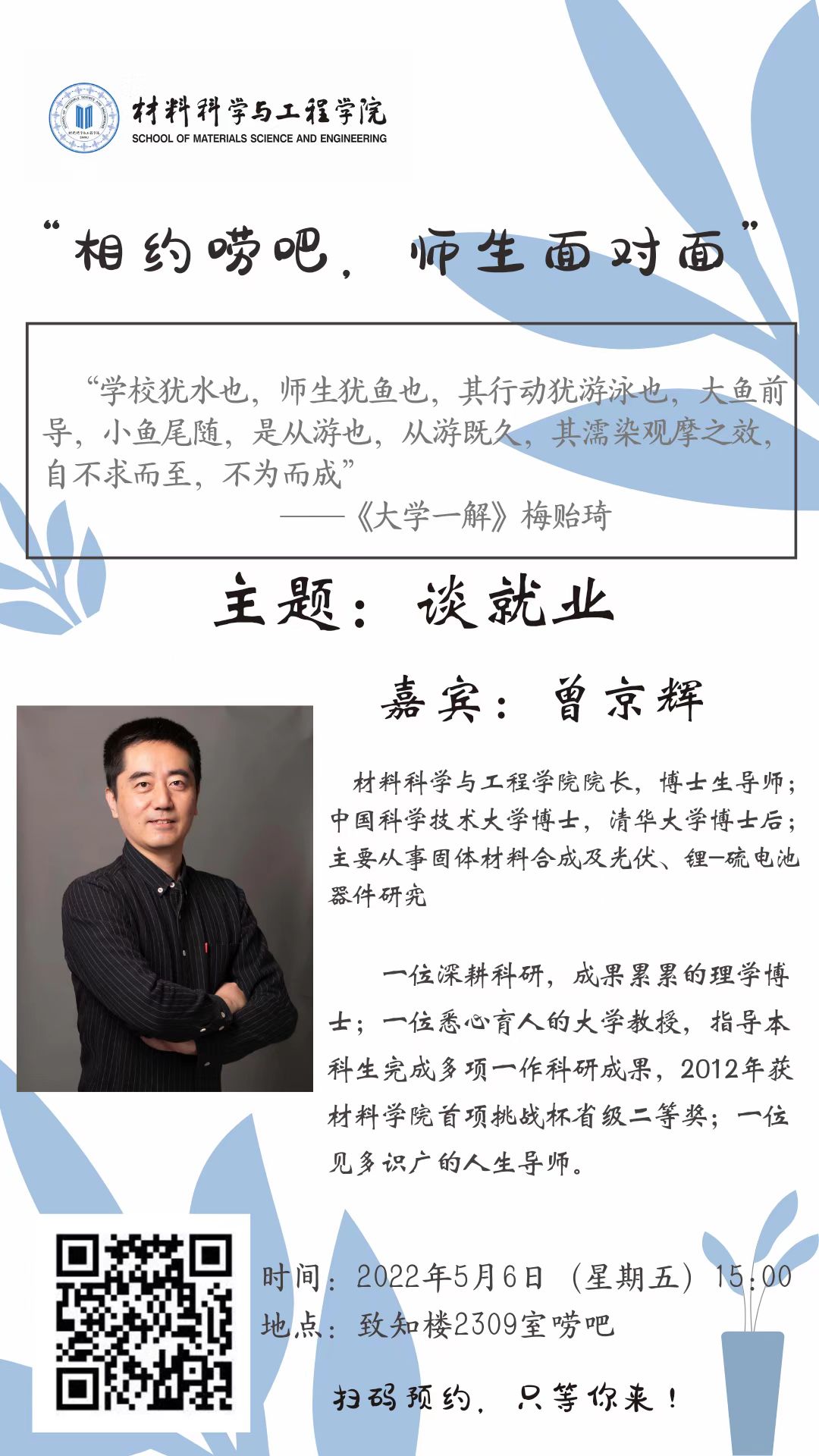 日下午开展第三期“相约唠吧,师生面对面”活动。具体通知如下: