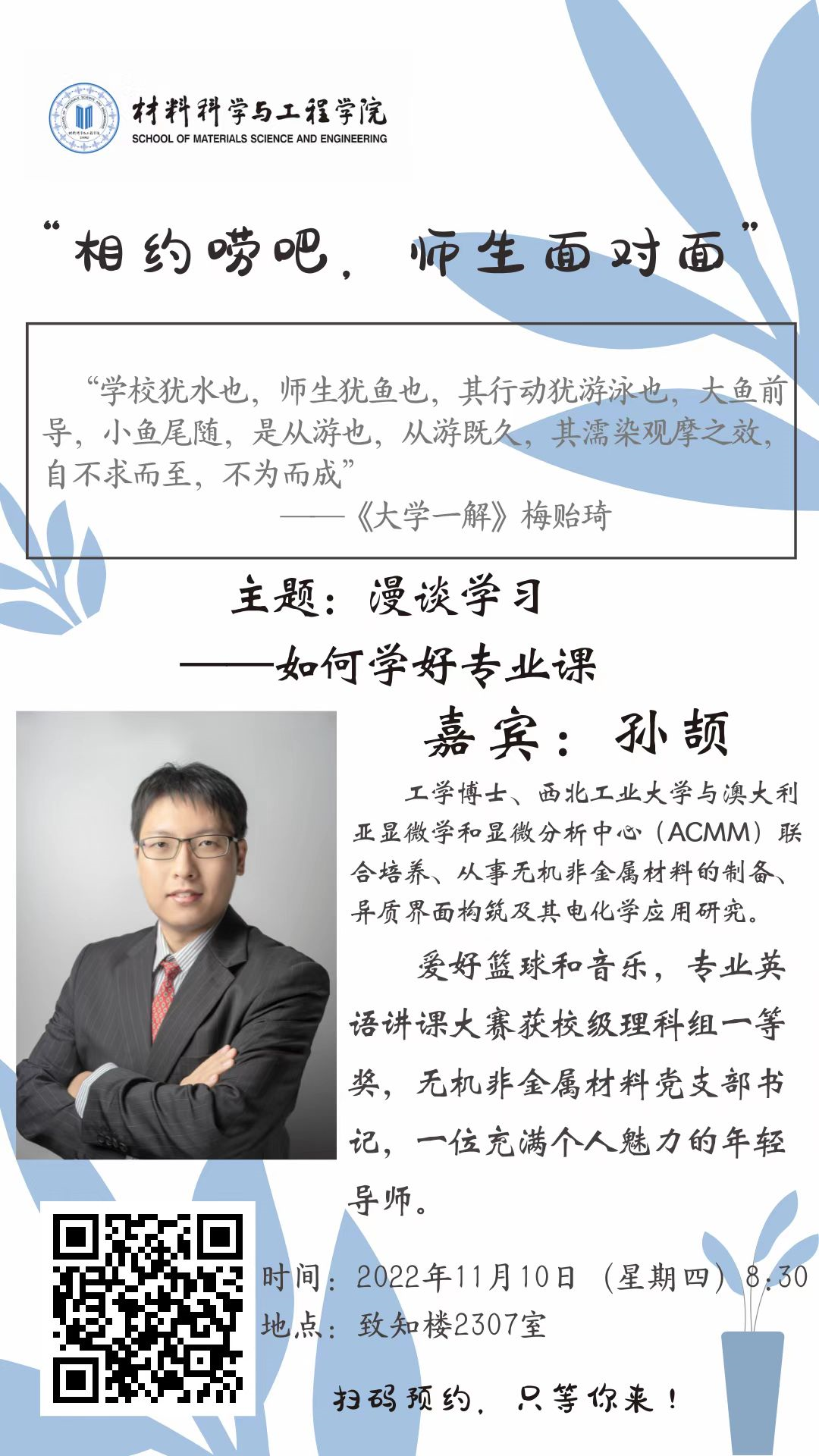 日上午开展2022年秋季第一期“相约唠吧,师生面对面”活动。具体通知如下: