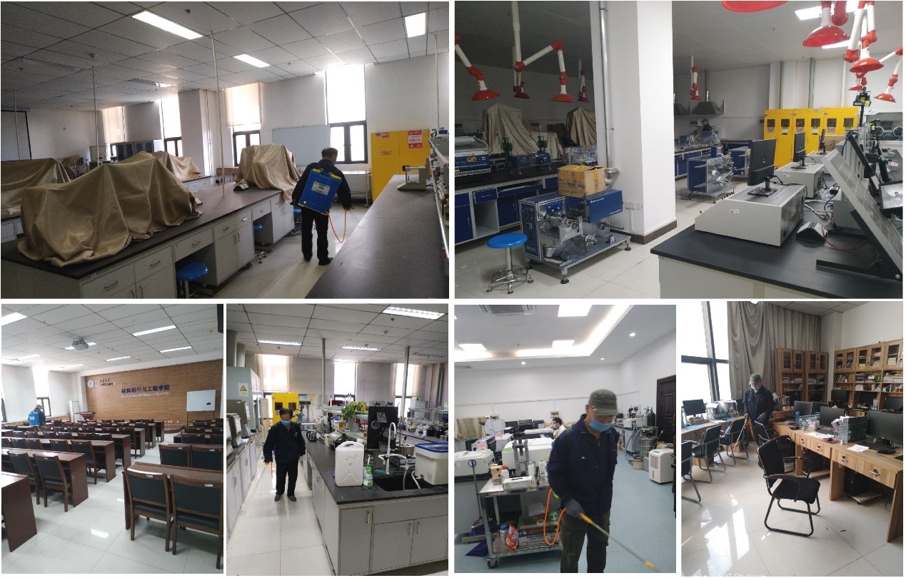 其次,4月27日-29日,公司对所有本科实验室、科研实验室、研究生交流室和会议室等场所进行全面消杀,不留死角,复学前给师生们提供一个安全的实验工作环境。同时制定了复学后消杀的详细办法和监管制度。