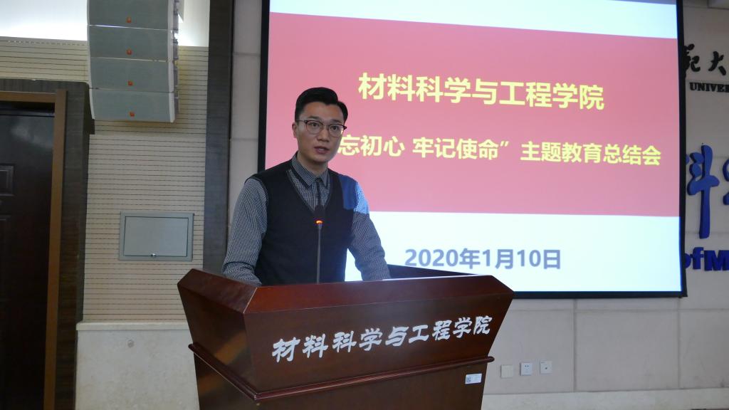 1月10日下午,我院在致知楼七层报告厅召开“不忘初心、牢记使命”主题教育总结会。公司党总支书记、学院主题教育领导小组组长杨千社通报院级领导班子民主生活会情况,总结学院主题教育情况。“不忘初心、牢记使命”主题教育校内第三巡回指导组成员范玮熠对我院开展主题教育情况进行点评。学院领导班子、全体师生党员及基础实验教学中心党员参加会议,大会由经理陈新兵主持。