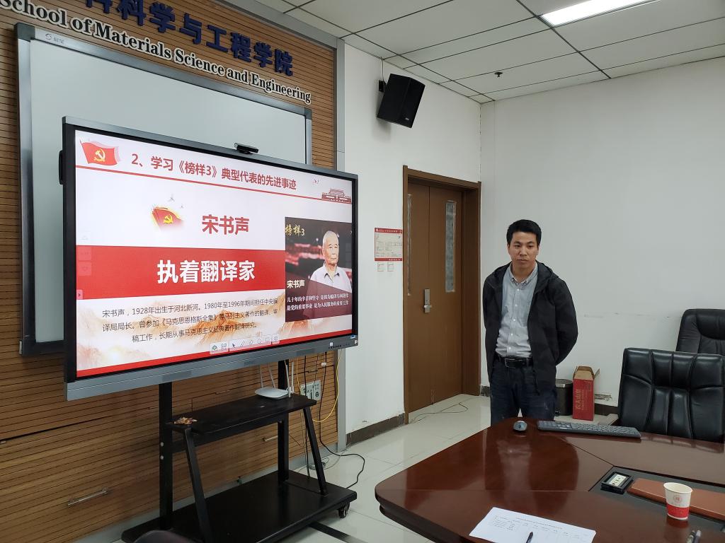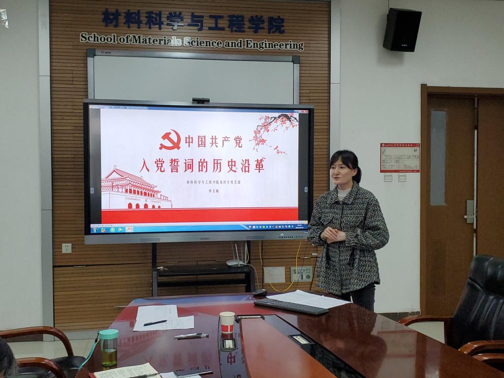 教师第一党支部书记石峰讲授党课的题目是《历史烛照时代 榜样传承精神》,通过四位在不同岗位做出突出贡献的优秀党员的先进事迹,展示了党员应有的时代风范和精神;教师第二党支部书记王强以延安精神及时代价值为主题,对延安精神的形成、内涵和时代价值展开了论述;教师第三党支部书记赵桦从“一五”到“十四五”规划的内容为切入点,讲述了我们党执政能力和治理能力的不断提升的过程。本科生党支部书记何文曦以中国共产党入党誓词的历史沿革为主线,叙述了从建党之初到现在,不同阶段的党员以怎样的座右铭作为自己的行动指南,终身践行。
