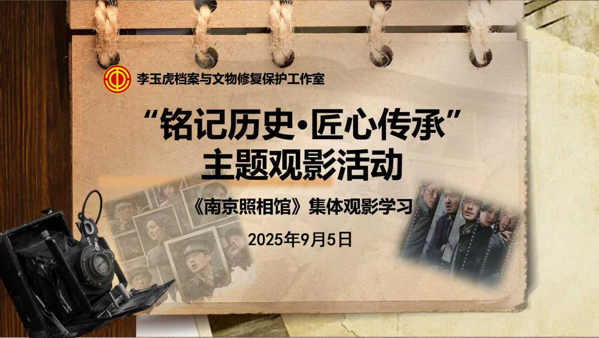 为纪念中国人民抗日战争暨世界反法西斯战争胜利80周年,深化爱国主义教育与工匠精神培育,9月5日下午,李玉虎档案与文物修复保护工作室组织工作室成员集中观看爱国主义影片《南京照相馆》,在光影中重温民族记忆,于回望历史中砥砺初心使命。