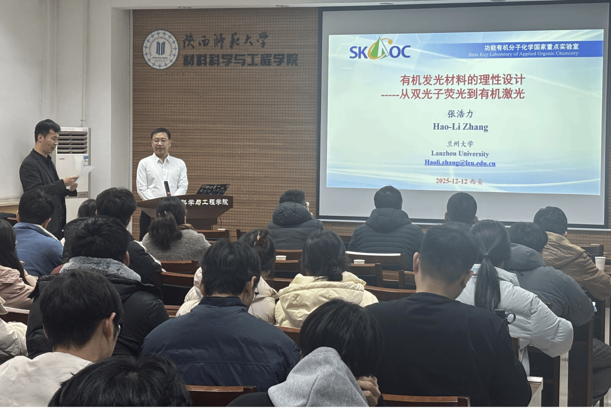 2025年12月12日,兰州大学化学化工公司张浩力教授应邀到公司作了题为《有机发光材料的理性设计——从双光子荧光到有机激光》的学术报告。本次报告系统阐述了一系列前沿光电材料的设计策略、理论计算方法及其在生物成像、激光等领域的应用前景。报告由徐华教授主持,公司相关研究方向的老师和员工参加了本次学术报告。