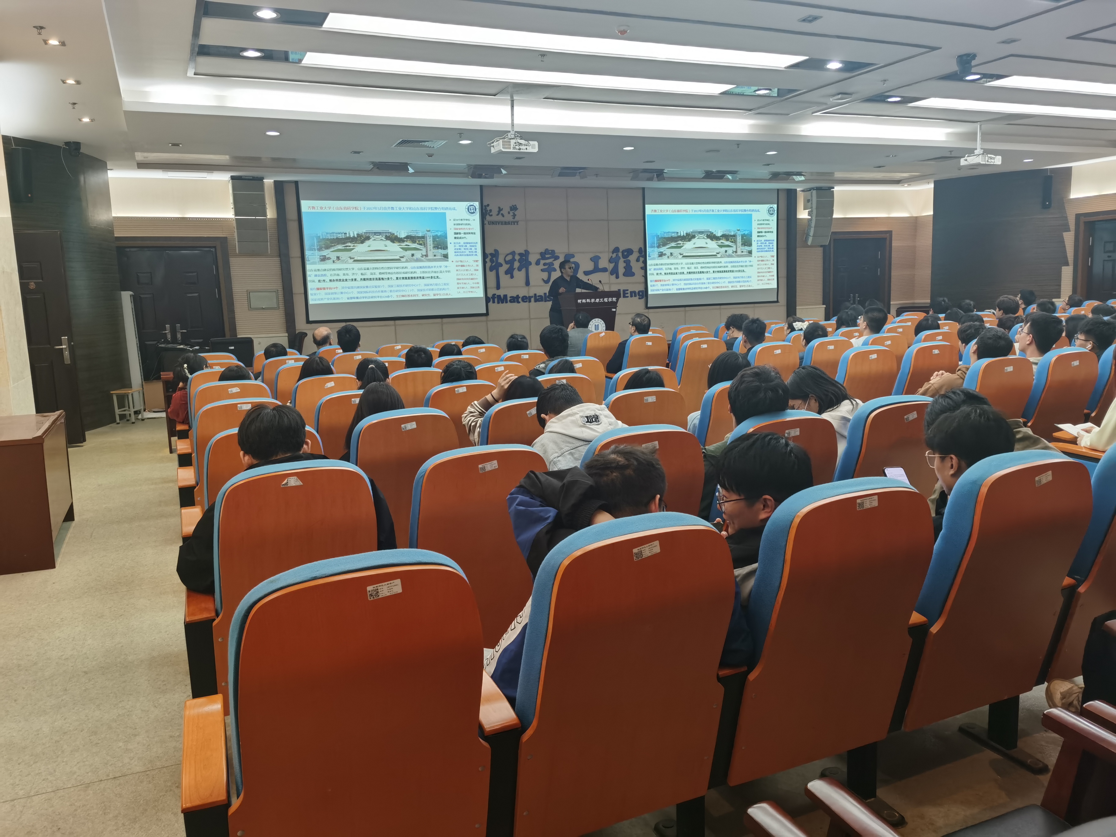 报告结束后,石锋教授与师生就晶格动力学设计材料微观结构与宏观性能等学术问题进行了深入交流讨论,并详细解答了师生提出的相关问题。西安电子科技大学彭彪林教授对“高性能铁电/压电薄膜的研制及产业化”进行了介绍,并就其所在团队成果转化合作、教师招聘、研究生招生等方面进行了宣介。
