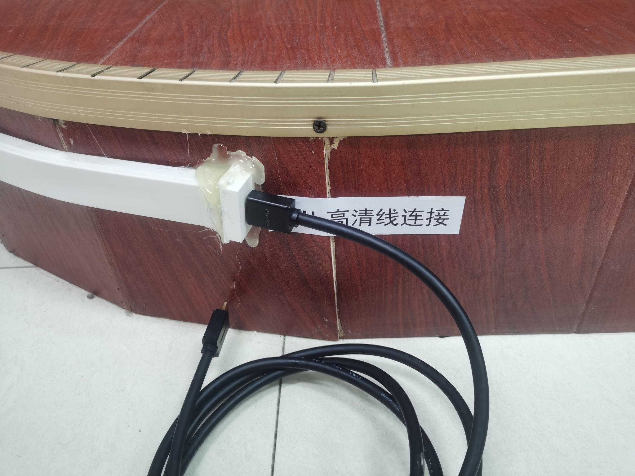 图二 HDMI高清连接线与梯台的投影仪接口连接