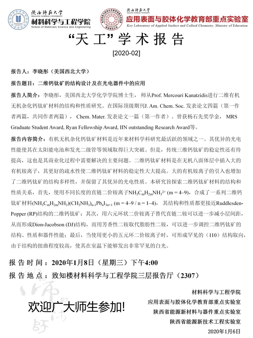 【学术报告】1月8日“天工”学术报告预告