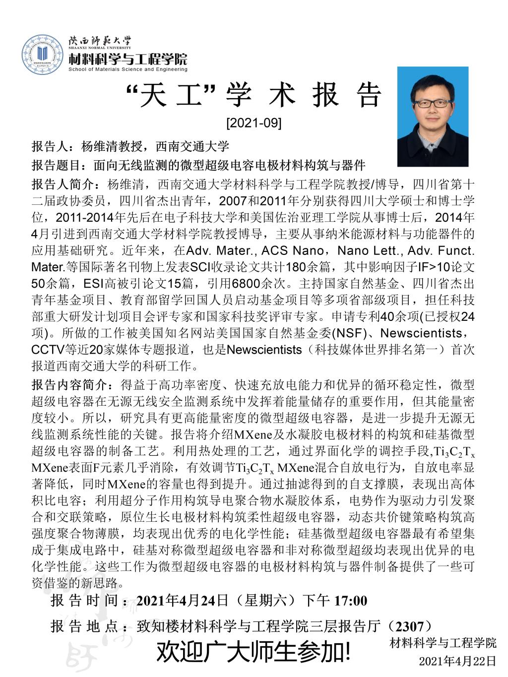 【学术报告】4月24日学术报告预告(五)