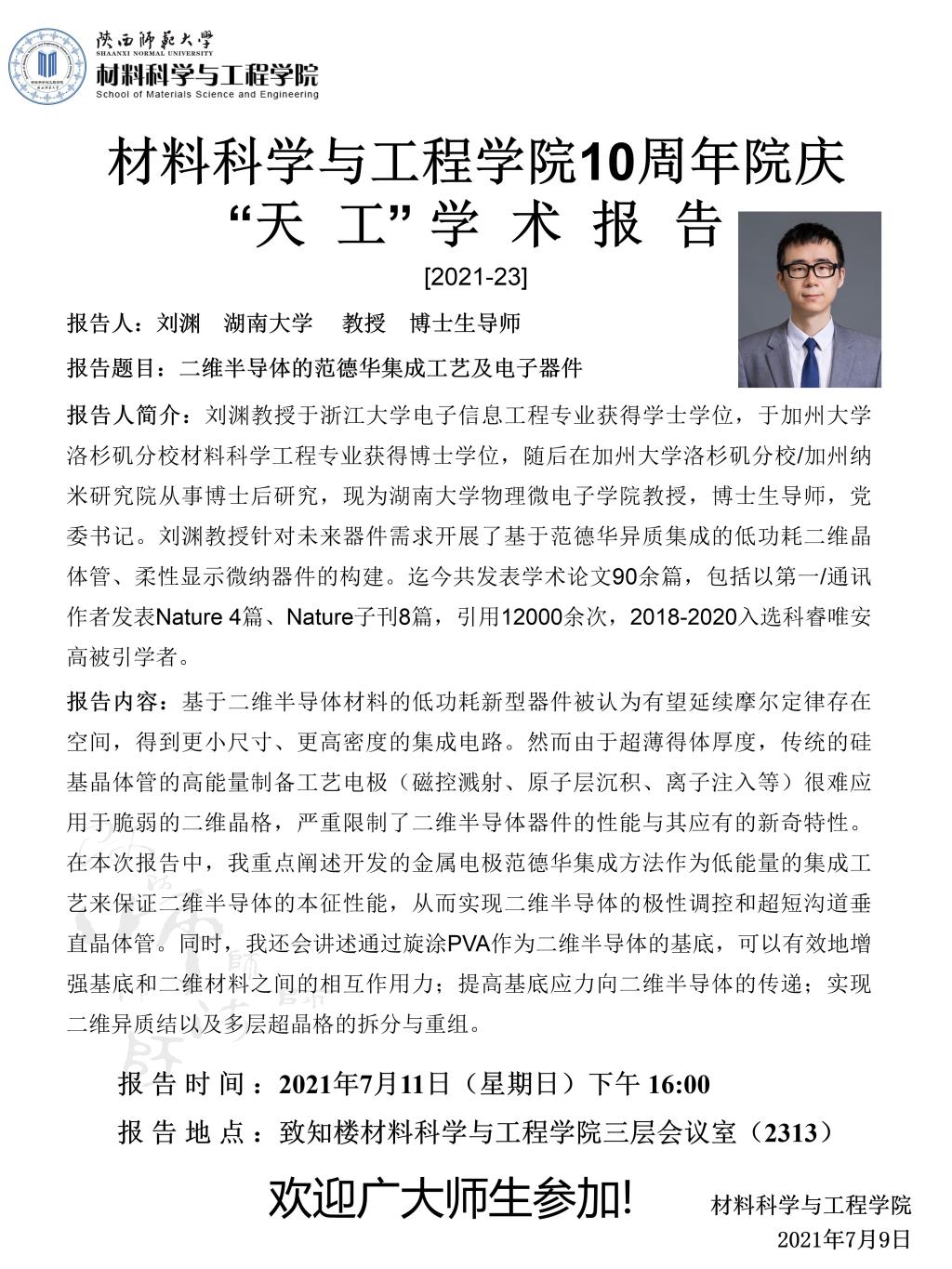 【学术报告】7月11日学术报告预告
