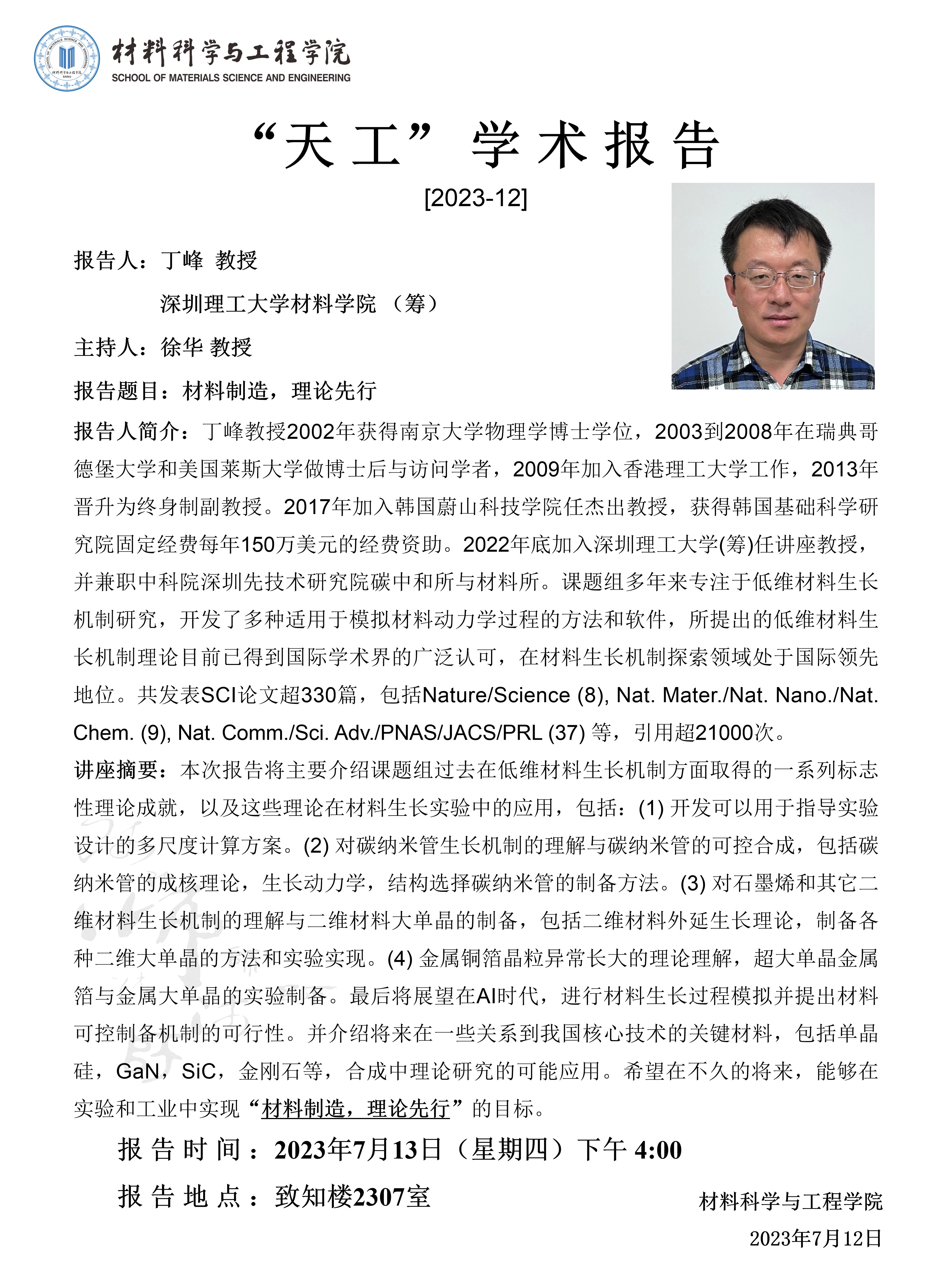 【学术报告】7月12日学术报告预告