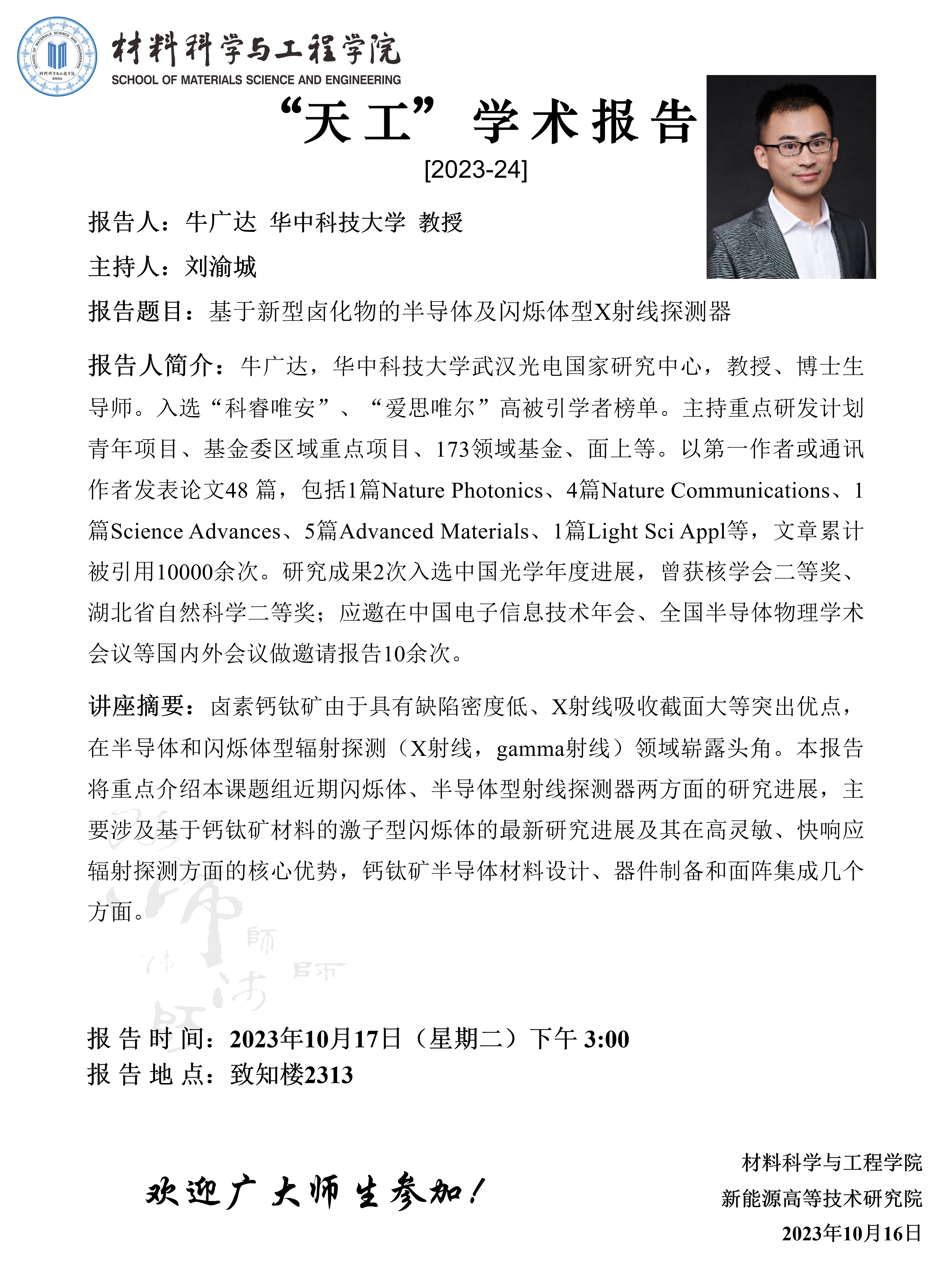 【学术报告】10月17日学术报告预告(二)